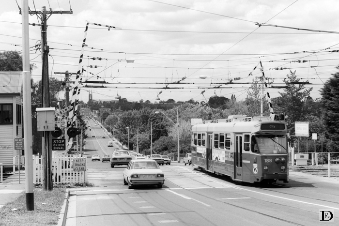 Spoorwegovergang Alamein Railway bij Riversdale Station.