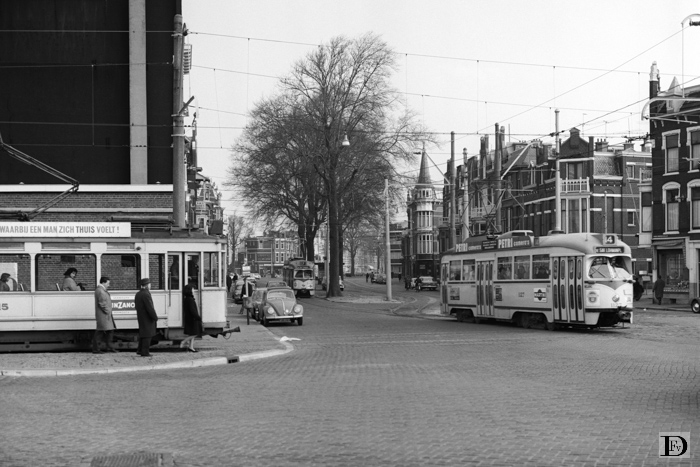 De foto is genomen ten tijde van de laatste fase van de bouw van de nieuwe brug over het Verversingskanaal; de trams reden enkel spoor i.v.m. de werkzaamheden. Achter lijn 14 is de boog naar het andere spoor te zien.