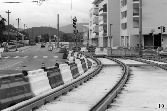 St-Martin d'Hères, aanleg trambaan toekomstige lijn D in de avenue Benoit Frachon.