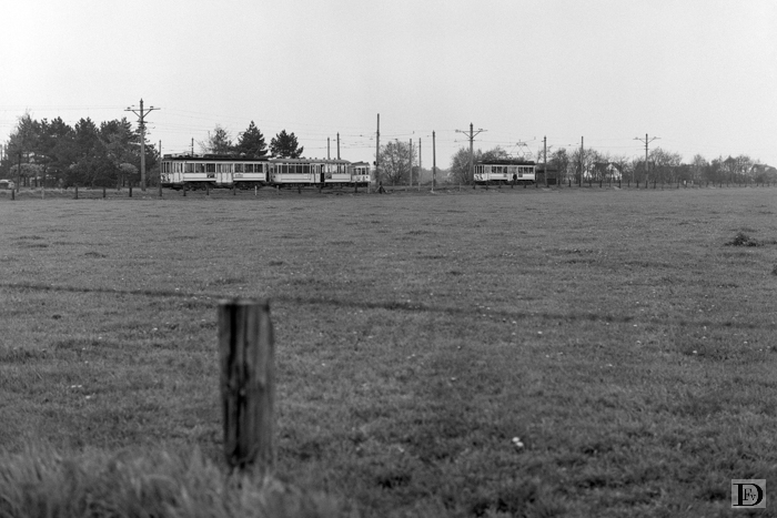 Den Deijl, remise HTM met dienst Den Haag - Leiden (geheel rechts) en rangerende trams (afrangeren ahr. van voorgenoemde dienst).