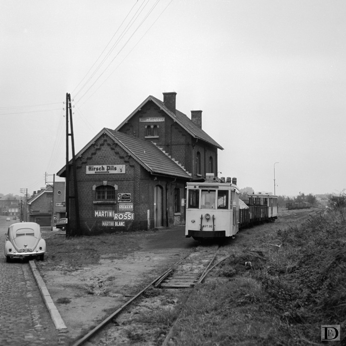Het buurtspoorweg stationnetje te Grez-Doiceau met een bietentram halverwege de lijn Waver - Incourt - Jodoigne.