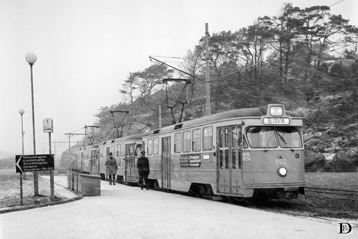 Proefrit met driewagentram op, tijdens benzinerantsoenering aldus te versterken, lijn 2.