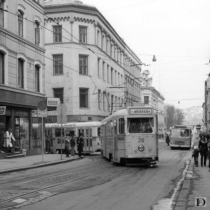 Lijn 1 wringt zich door een moeilijke bocht nl. van de Dronningens gate in de Prinsens gate.