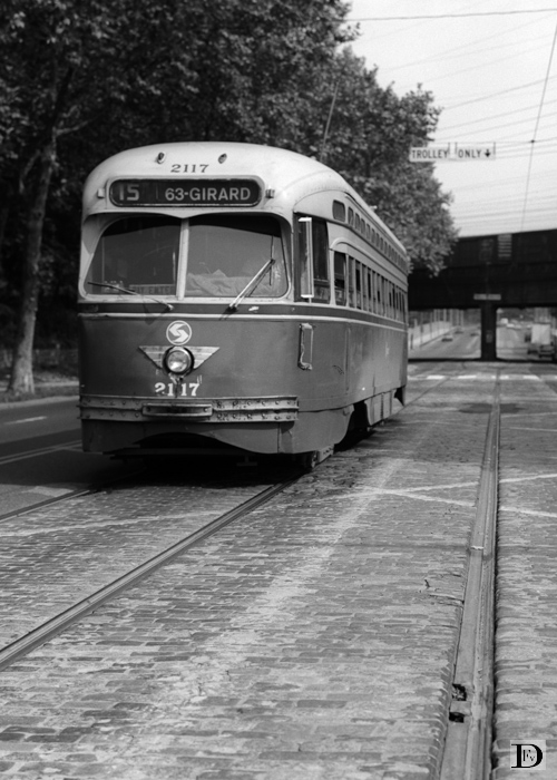 Girard Ave. bij de Zoo met op de achtergrond viaduct van de Penn Central Railroad.