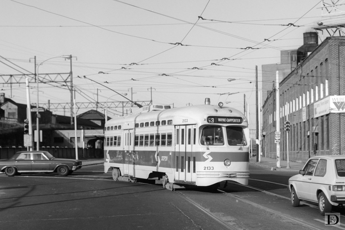 "Rehabilitated" PCC car 2133 rijdt van Wayne Ave.
