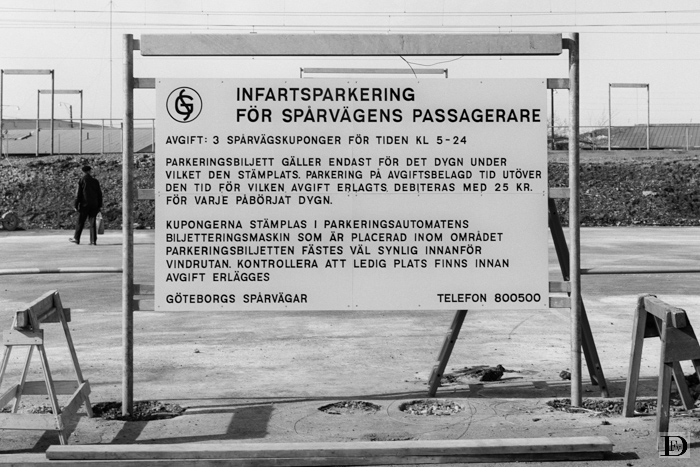 Gamlestadstorget, het bord waarmee het parkeerterrein bij het station van lijn 8 wordt aangeduid.