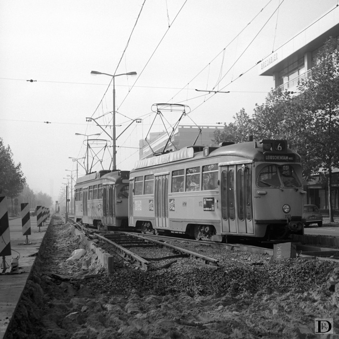 Het Kleine Loo tijdens de eerste keer dat de tramsporen werden vernieuwd. Het spoor richting Voorburg, tussen Vlamenburg (voorgrond) en Hofzichtlaan, is verwijderd. De trams rijden enkel spoor.