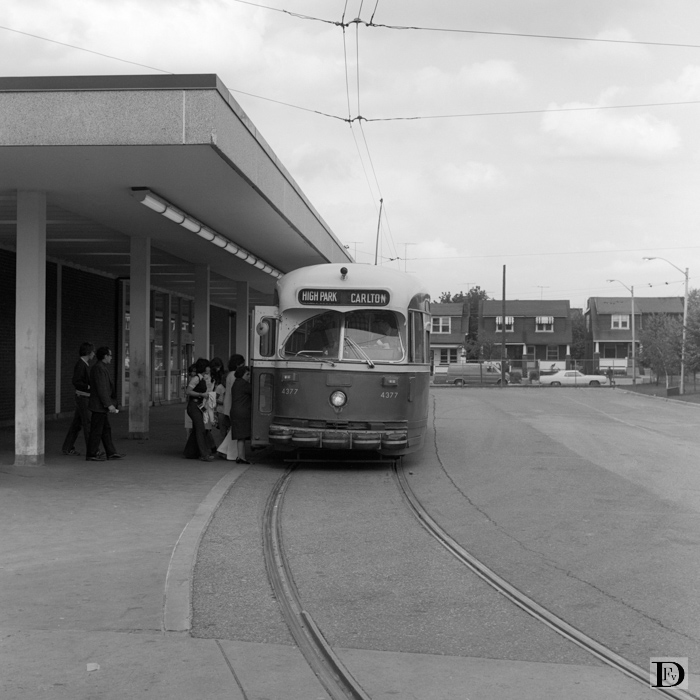 Main Street subway station (Bloor-Danforth lijn), het oostelijke begin- en eindpunt van de Carloon lijn. Een bijzonderheid van dit en sommige andere overstapstations tussen subway en tram is, dat het hele overstapgebied binnen de ingangscontrole ligt.